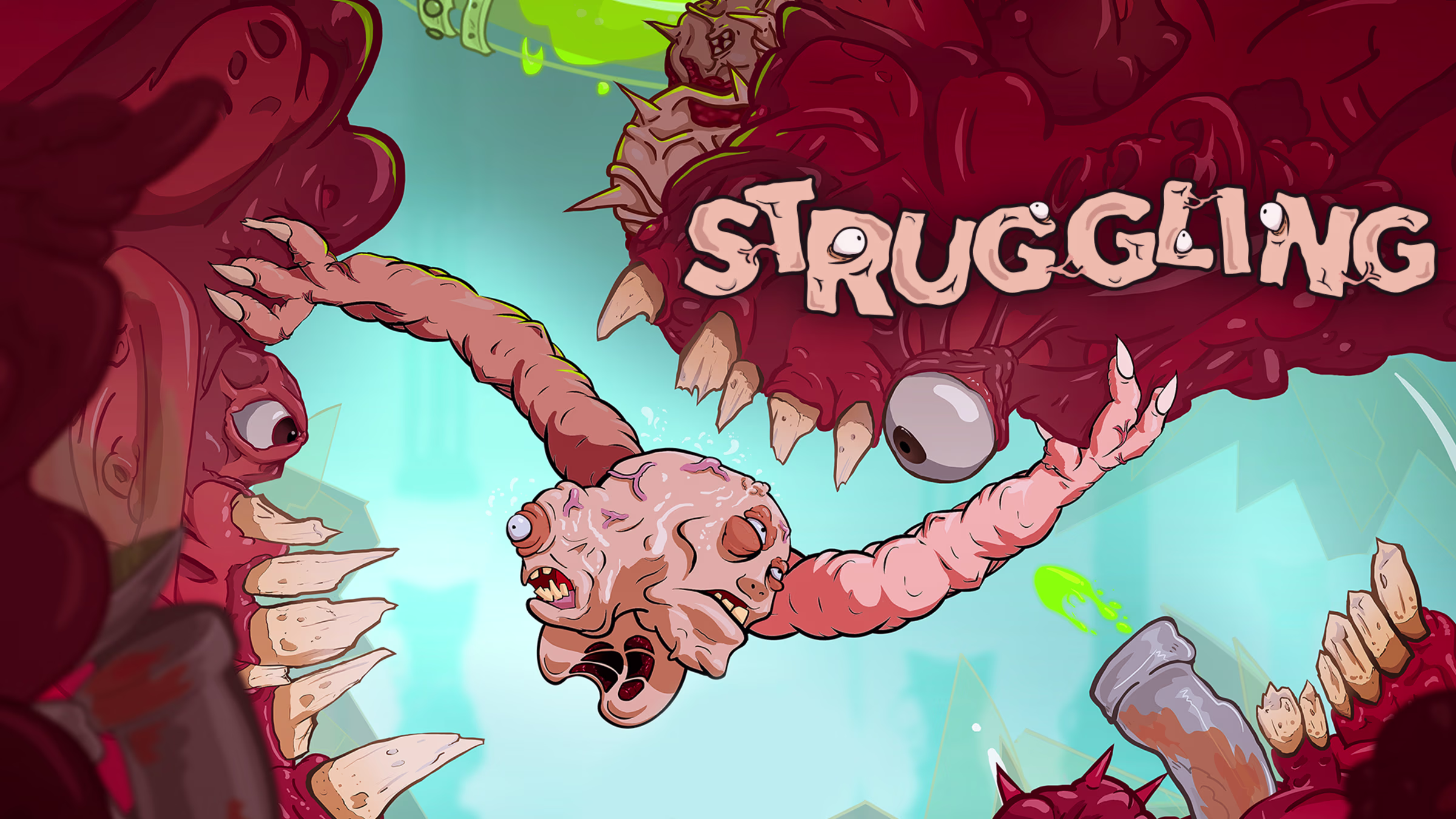 Côté ambiance romantique, c’est sûr que Struggling n’est pas le jeu qui inspire le plus au badinage sentimental. On y incarne une abomination, une tête qui ne peut que hurler, munie de deux bras contrôlés séparément par chacun des joueurs.